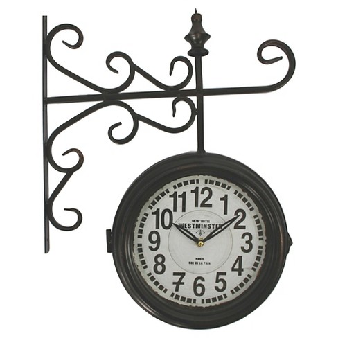 Made from aged metal, this double sided clock has distinct vintage feel, the vented side giving the impression of a reclaimed barrel or industrial piece. Antique vintage double sided wall clock home decor station clock gift m195brana. The clock face features easy to read numbers. Shop for double sided wall clocks at walmart.com. Top rated double sided wall clock at a great price.